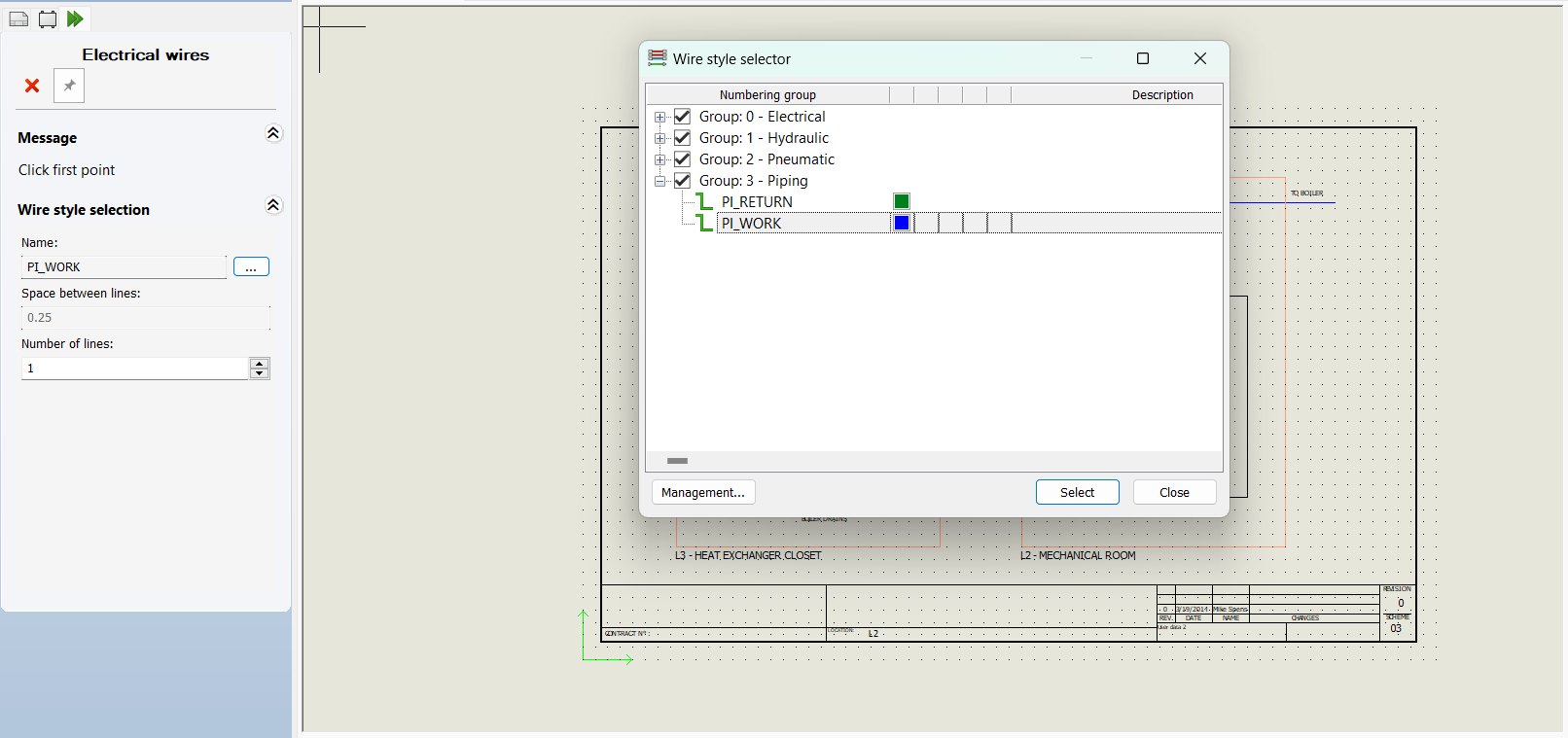 - Selanjutnya kita membuat jalur pipa dengan menggunakan Draw Single Wire.